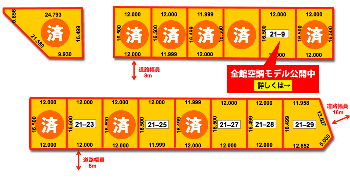 土地面積 | 197.98㎡(59.88坪)〜292.82㎡(88.57坪) | ||||||||