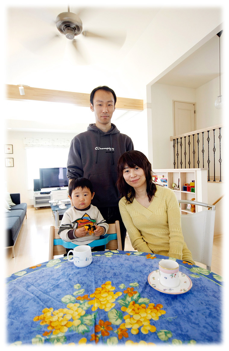 明るい自然光が燦々と射し込むリビングルームは、1歳半になる息子さんのプレイコーナーも兼ねています。「なるべくナチュラル素材のおもちゃを、と選んでいたら、それが偶然リビングのイメージにぴったり合って」と奥様が言うように、木目の美しい木のおもちゃが空間のアクセントにもなっています。開放感にあふれ、上品なインテリアが温もりと優しさを醸し出す山本邸。ご家族3人の楽しそうな笑い声から、こだわりの家で暮らす喜びが伝わってきました。