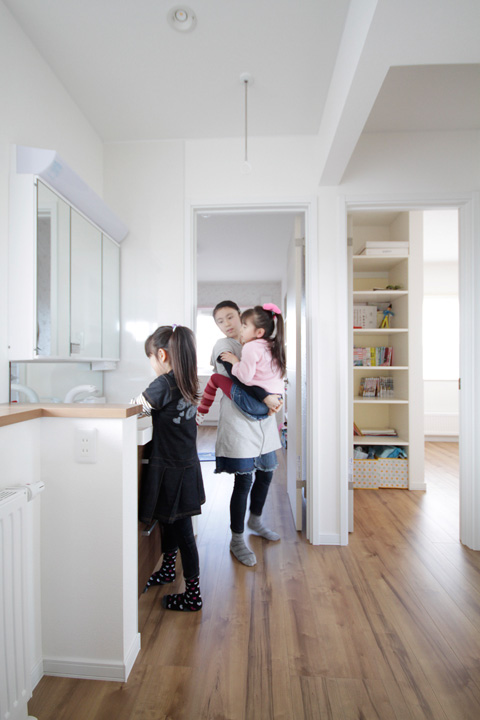 家族が多いため、個室がある3階にも大型の洗面化粧台を設置しました。