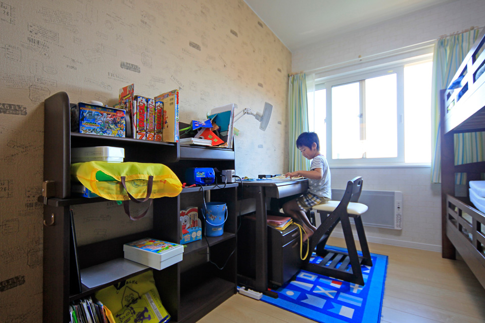 お子さんたちにはワンポイントで、それぞれ自分の部屋の壁紙を選んでもらいました。お兄ちゃんもお嬢さんも、お気に入りの柄を選ぶことができて、満足している様子です。